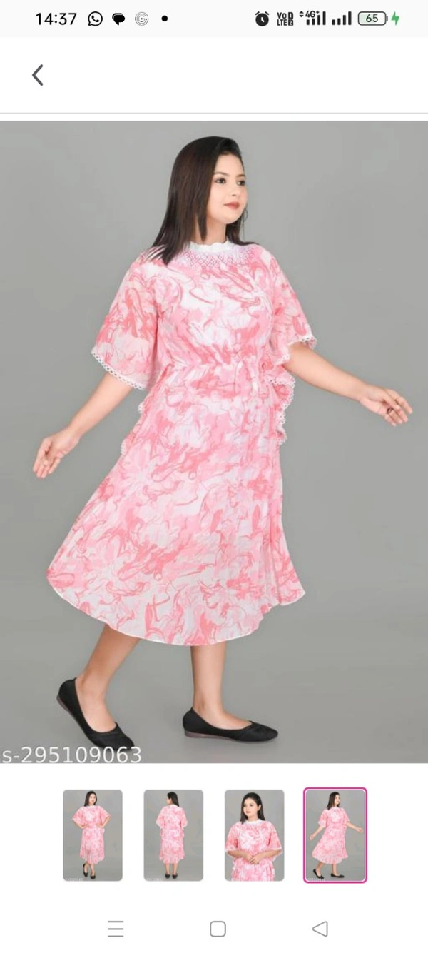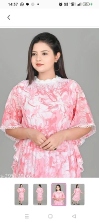 Aagyeyi Refined KurtisName: Aagyeyi Refined KurtisFabric: GeorgetteSleeve Length: Three-Quarter SleevesPattern Printed: Size: -L X XXL Country of Origin: India