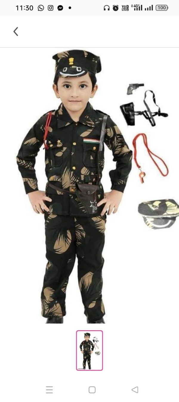 Boys Printed Army Or Bsf Dress With Cap Whistle Rope Gun Gun Cover Or Fancy Dress Compitition Or Regular WearTop Fabric: CottonBottom Fabric: CottonSleeve Length: Long SleevesTop Pattern: PrintedBottom Pattern: PrintedNet Quantity (N): SingleAdd-Ons: CapSizes:1-2 Years,