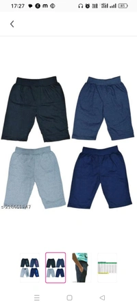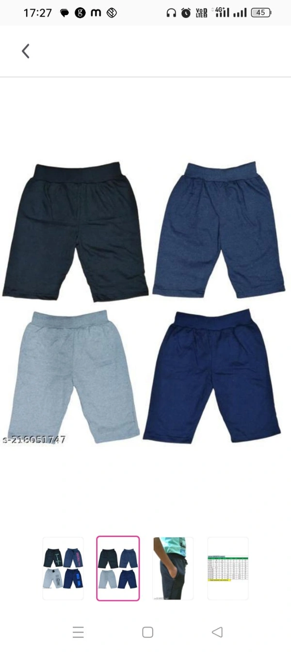 BOYS THREE FOURTH SHORTS 4PKFabric: CottonPattern: PrintedNet Quantity (N): 4Beautiful Seyor Cotton Shorts with attractive prints which are extremely comfortable for the both boys and girls .It is available in 4 different colours.Fancy print on right panel.Elastic and drawstings are attached at waistband.Single pocket at right side.It can use for reg