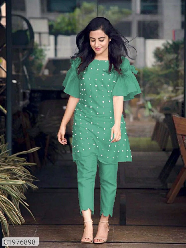 *Catalog Name:* Elegant Rayon Moti Work Kurti Pant Set⚡⚡ Quantity: Only 5 units available⚡⚡*Details:*Product Name: Elegant Rayon Moti Work Kurti Pant SetPackage Contains: 1 Kurti with 1 Pant Kurti Set Fabric: Rayon Kurti Set