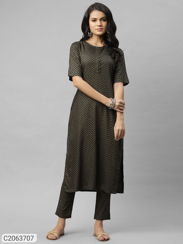 *Catalog Name:* Rigo Printed Viscose Straight Kurti Pant set⚡⚡ Quantity: Only 5 units available⚡⚡*Details:*<p><span style="background-color: rgb(250, 250, 250); color: rgb(249, 75, 75);">Product Name: Rigo Printed Viscose Straight Kurti Pant set Package Contains: 1 piece of Kurti, 1 piece of Pant ,