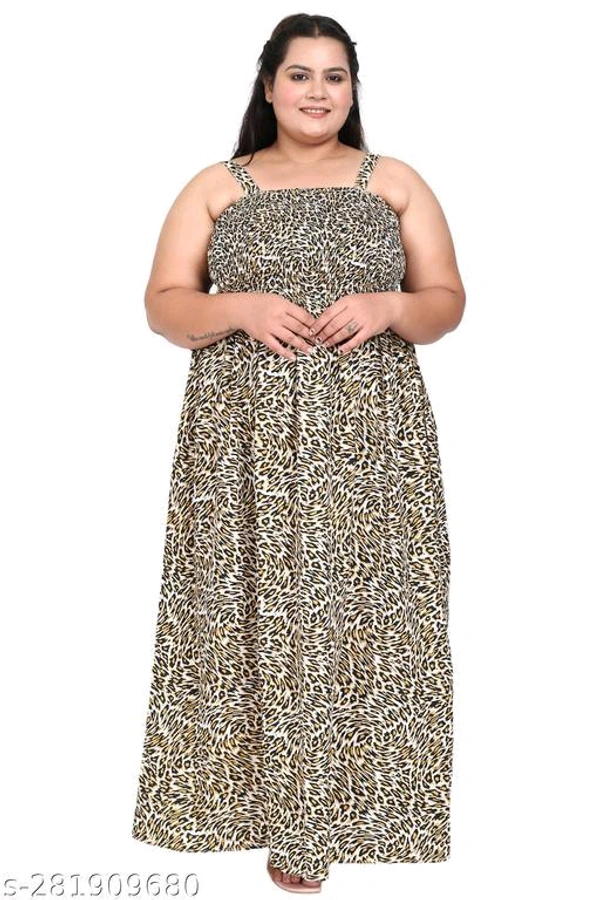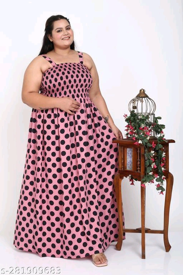 Catalog Name:*Urbane Partywear Women Dresses*Fabric: Poly CrepeSleeve Length: SleevelessPattern: PrintedNet Quantity (N): 1Sizes:XL (Bust Size: 42 in, Length Size: 52 in) XXL (Bust Size: 44 in, Length Size: 52 in) XXXL (Bust Size: 46 in, Length Size: 52 in) 4XL (Bust Size: 48 in, Length Size: 52 in) Dispatch: 2 Days*Proof of Safe Delivery! Click to know on Safety Standards of Deliv