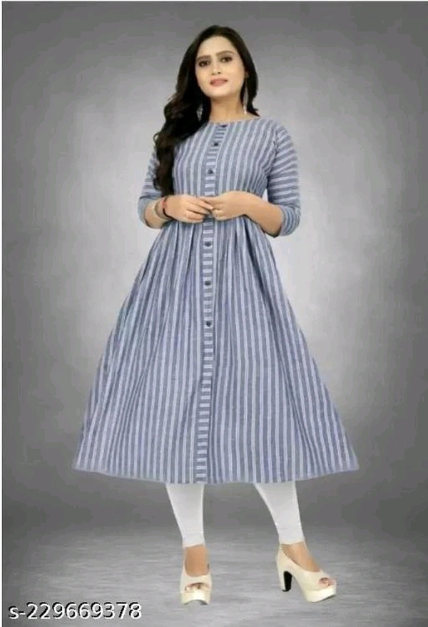 Cotton double lining Anarkali Cut Kurti, Formal Wear Kurti Office wear Cotton KurtiName: Cotton double lining Anarkali Cut Kurti, Formal Wear Kurti Office wear Cotton KurtiFabric: CottonSleeve Length: Three-Quarter SleevesPattern: StripedCombo of: SingleSizes:M (Bust Size: 38 in, Size Length: 44 in) L (Bust Size: 40 in, Size Length: 44 in) XL (Bust Size: 42 in, Size Length: 44 in)
