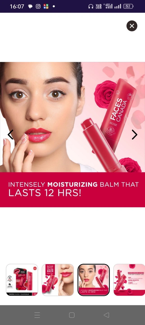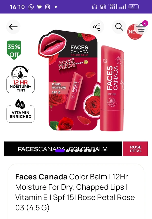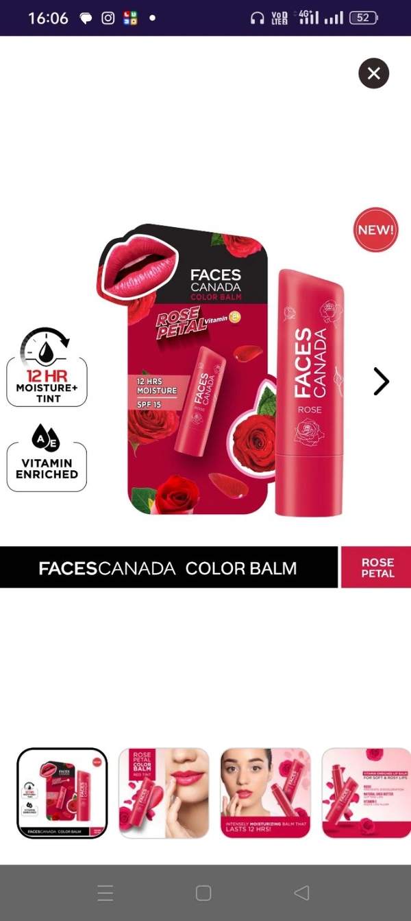 Faces Canada Color Balm | 12Hr Moisture For Dry, Chapped Lips | Vitamin E | Spf 15| Rose Petal Rose 03 (4.5 G)