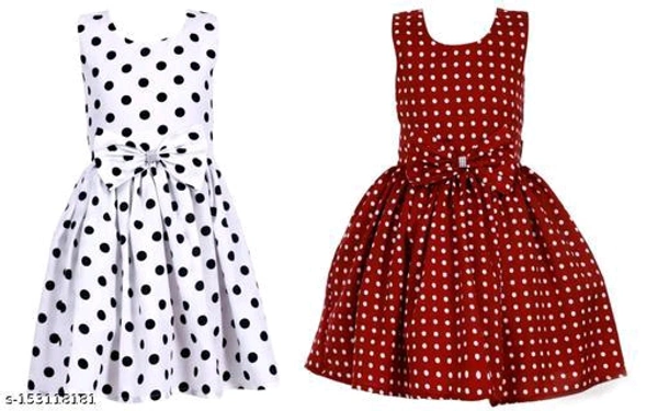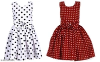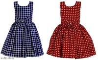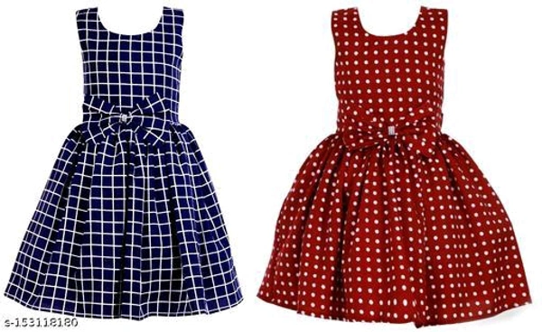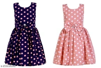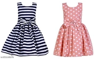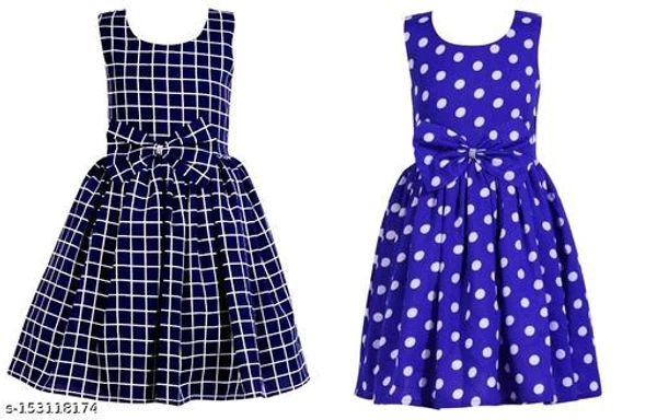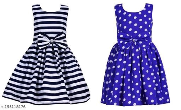 Girls Crepe Printed Frocks (Navy Strip+ Royal Blue Dot) Frocks & Dresses Fabric: CrepeSleeve Length: SleevelessPattern: PrintedNet Quantity (N): Pack Of 2Sizes:2-3 Years (Bust Size: 10.5 in, Length Size: 22 in) 3-4 Years (Bust Size: 11 in, Length Size: 23 in) 4-5 Years (Bust Size: 11.5 in, Length Size: 2