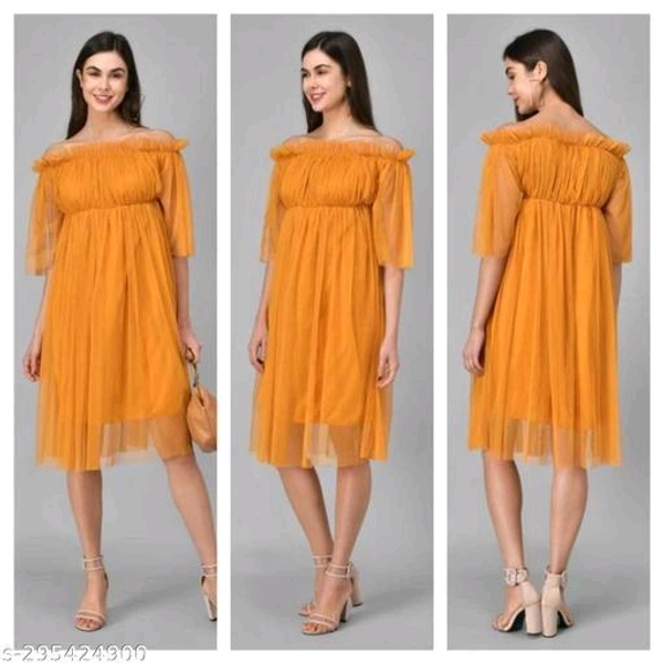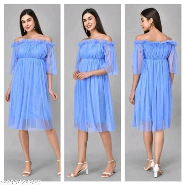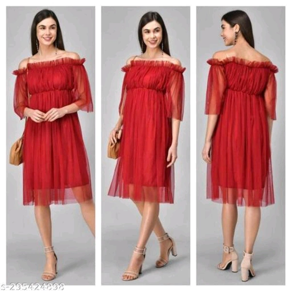 Graceful Women Dresses*Fabric: NetSleeve Length: Product DependentPattern: SolidNet Quantity (N): 1Sizes:S (Bust Size: 34 in, Length Size: 35 in) M (Bust Size: 36 in, Length Size: 35 in) L (Bust Size: 38 in, Length Size: 35 in) Free Size (Bust Size: 35 in, Length Size: 35 in)