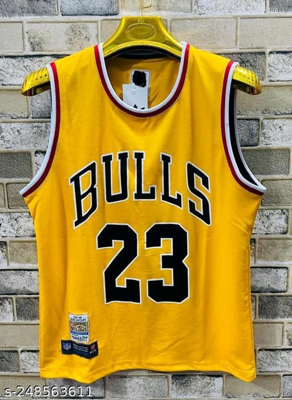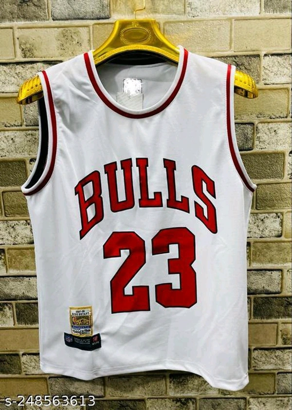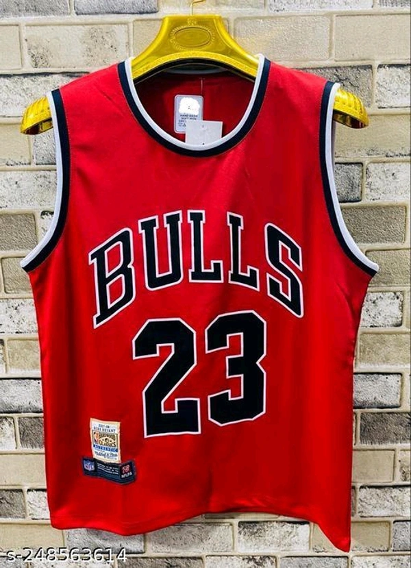 High Demand Bulls 23 Rib Imported Fabric Drifit Sandow Tshirts Fabric: PolyesterSleeve Length: SleevelessPattern: PrintedNet Quantity (N): 1Sizes:M, L, XL, XXLCountry of Origin: India