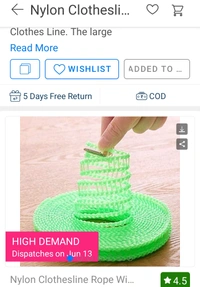 High DemandNylon Clothesline Rope Windproof with Hooks Pack of 1 (5M)⚡⚡ Quantity: Only 5 units available⚡⚡*Details:*Product Description: Make your clothes dry fast and quickly with this Nylon Clothes Line. The large capacity strong portable clothesline can take enough weights for wet clothes and sheets without falling or breaking., able to hang several loads of wash on this without