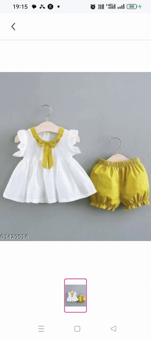 KIDS BABY GIRL YELLOW CLOTHING SET.Top Fabric: Cotton BlendBottom Fabric: Cotton BlendSleeve Length: Short SleevesTop Pattern: SolidBottom Pattern: SolidNet Quantity (N): SingleAdd-Ons: No Add OnsSizes:0-6 Months, 3-6 Months, 6-9 Months, 6-12 Months, 9-12 Months, 12-18 Months, 18-24 Months, 0-1 Years, 1-2 Years, 2-3 Years, 3-4 Years, 4-5 Years
