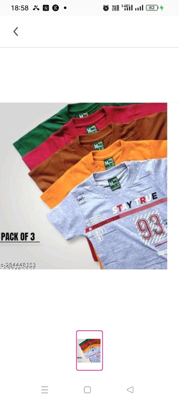Kids tshirt pack of 3Fabric: CottonSleeve Length: Short SleevesPattern: PrintedNet Quantity (N): Pack of 3Sizes: 0-1 Years, 1-2 Years, 2-3 Years, 3-4 Years, 4-5 Years, 5-6 Years, 6-7 YearsKids bay and girl tshirtCountry of Origin: India