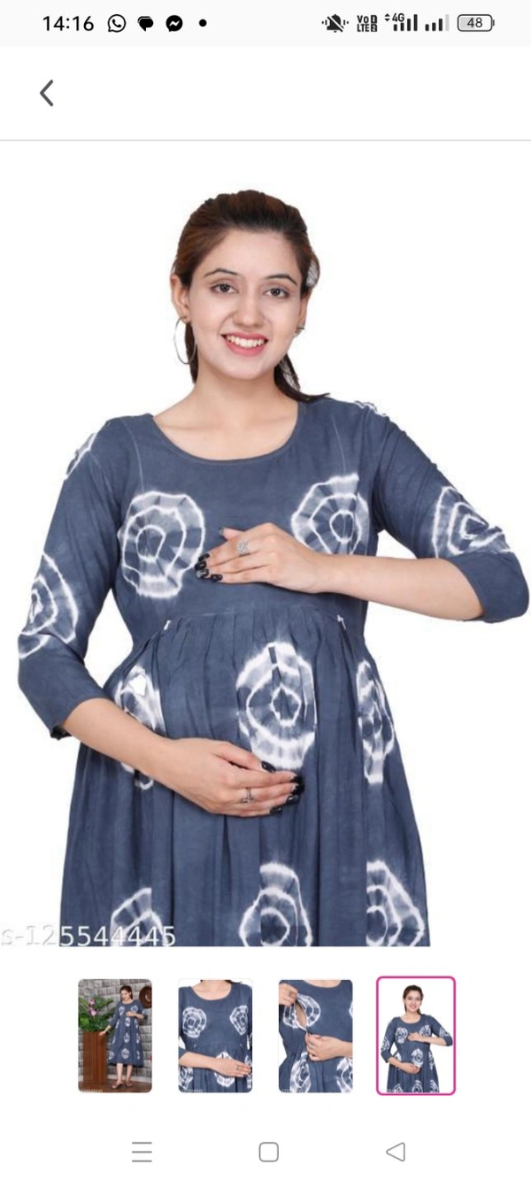 kurtisFabric: RayonBottomwear Fabric: AcrylicBottom Type: ChuridarSleeve Length: Long SleevesStitch Type: StitchedFit/ Shape: MaternityPattern: Dyed/ WashedCombo of: SingleFeed Anytime, Anywhere With These Stylish And Comfortable Maternity Wear From Maternity queen Available On Meesho. As We All Know Pregnancy Is A Big Change In Every Woman’S Life. Women Face Many Dresse