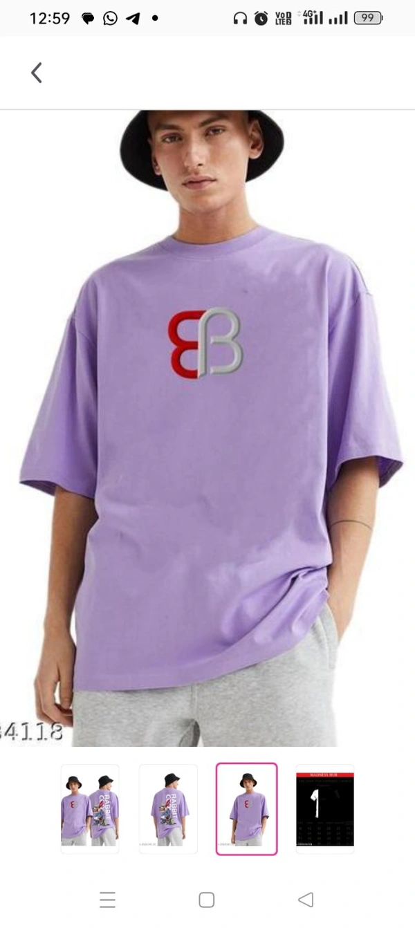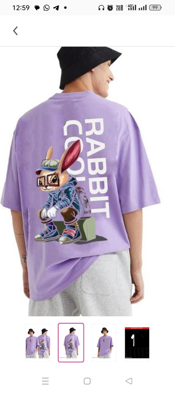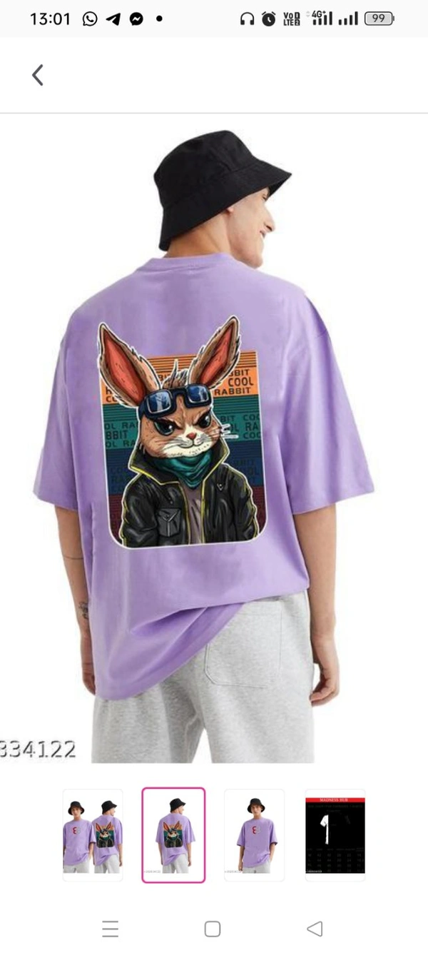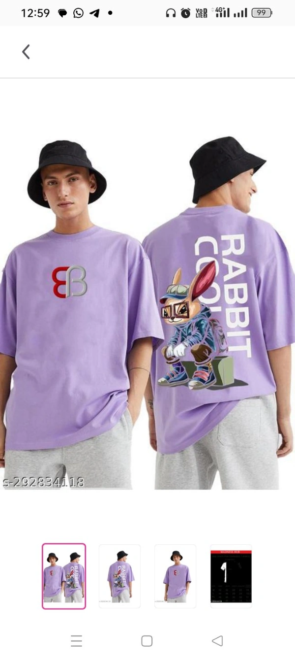 Lavender Classy Loose Fit Oversize Cotton T-Shirt For MenFabric: CottonSleeve Length: Three-Quarter Sleeves Pattern: Printed Net (N): 1 Sizes: M L XL XXl