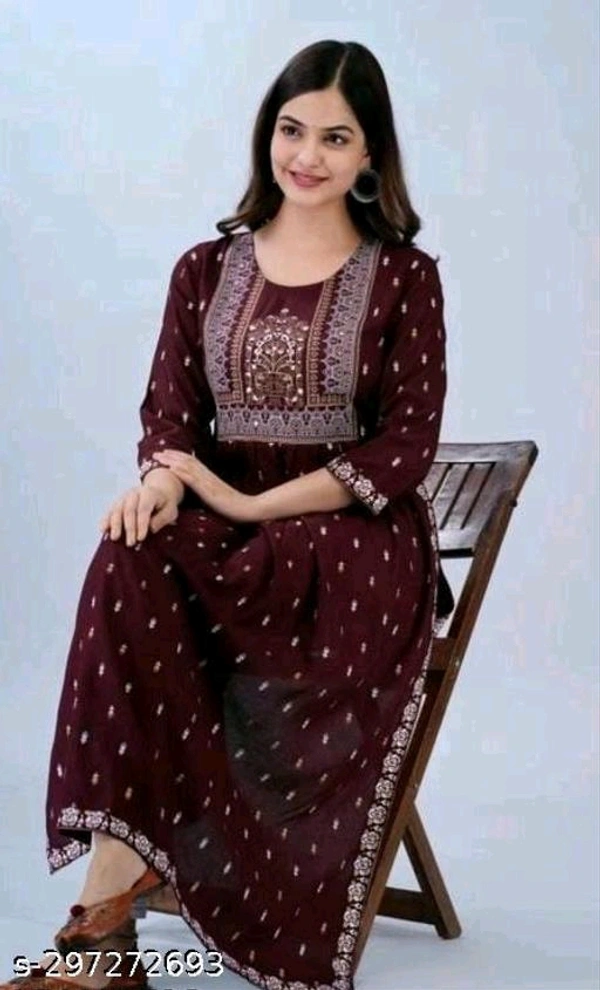 Maroon kurtiFabric: RayonSleeve Length: Three-Quarter SleevesPattern: PrintedCombo of: SingleSizes:M, L, XL, XXL, XXXLCountry of Origin: India