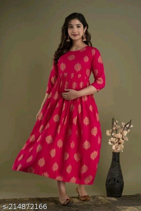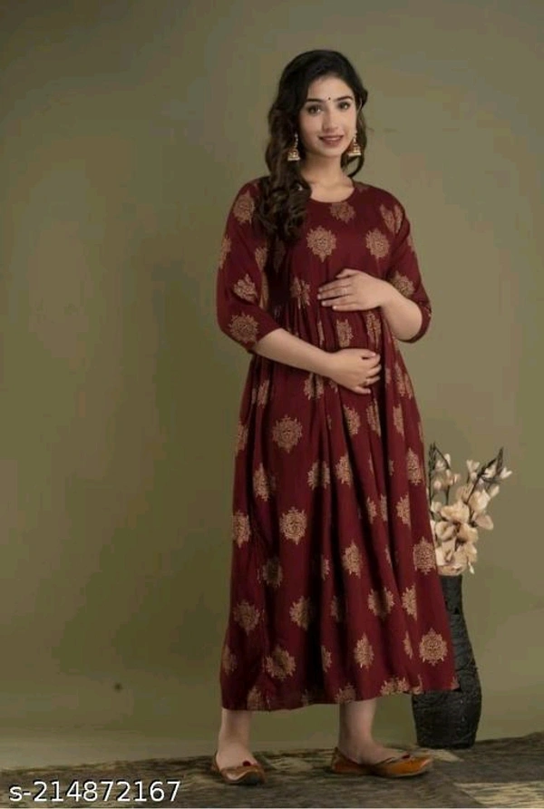 Maternity KurtisFabric: RayonSleeve Length: Three-Quarter SleevesStitch Type: StitchedFit/ Shape: MaternityPattern: PrintedCombo of: SingleSizes: M (Bust Size: 38 in, Top Length Size: 48 in, Waist Size: 32 in, Bottom Length Size: 48 in) L (Bust Size: 40 in, Top Length Size: 48 in, Waist Size: 34 in, Bottom Length Size: 48 in) XL (Bust Size: 42 in, Top Length Siz
