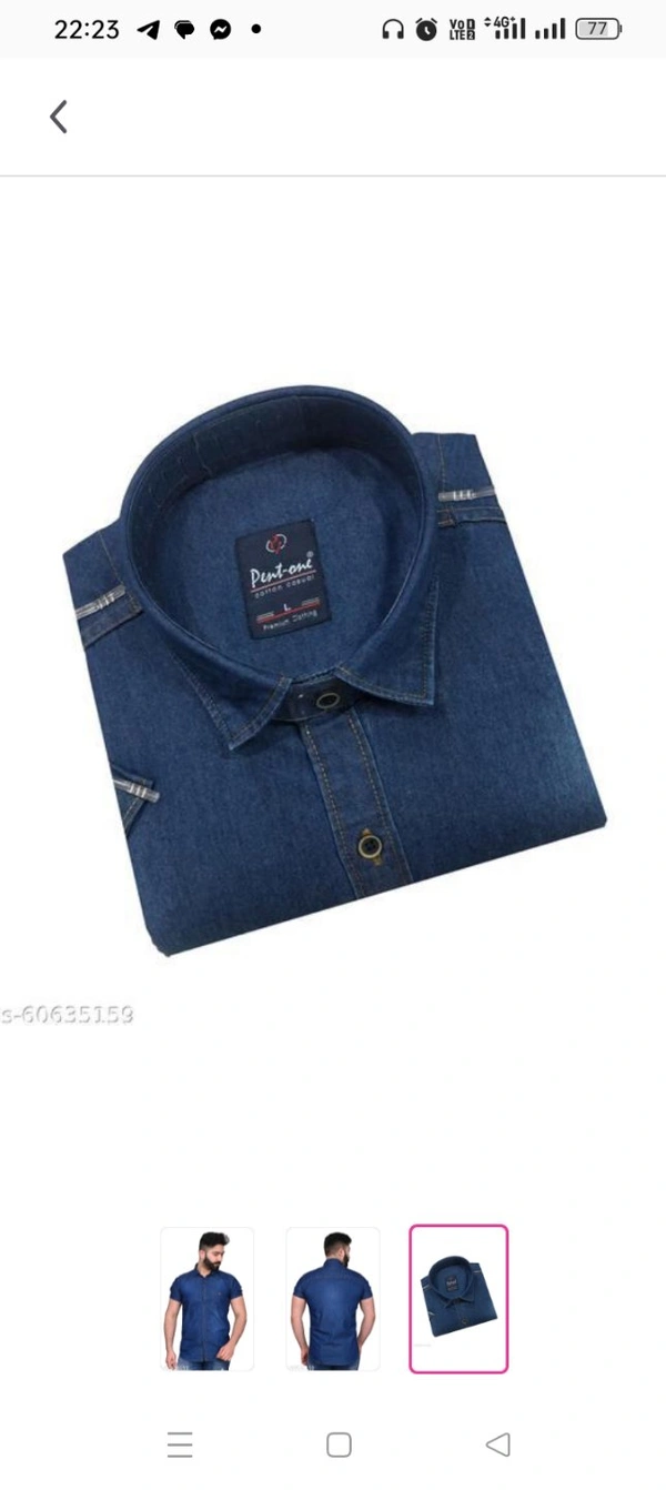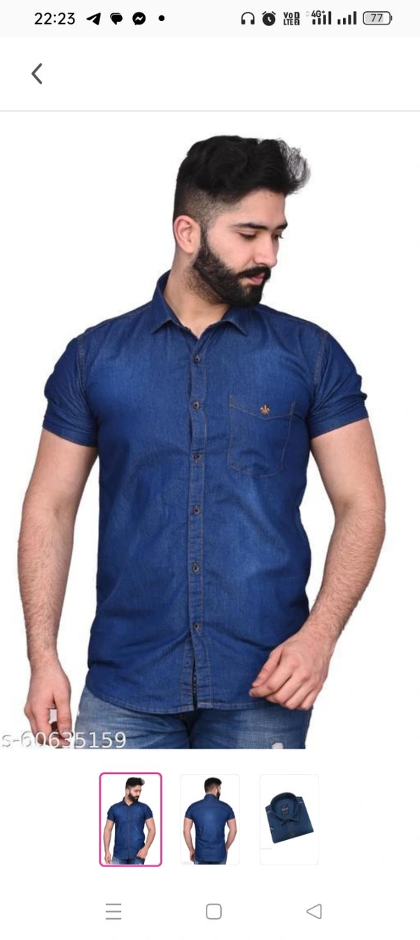 Men Casual ShirtName: Men Casual ShirtFabric: DenimSleeve Length: Short SleevesPattern: SolidNet Quantity (N):1 MMen Casual ShirtName: Men Casual ShirtFabric: DenimSleeve Length: Short SleevesPattern: SolidNet Quantity (N): 1Sizes:S, M (Chest Size: 40 in, Length Size: 29 in) L (Chest Size: 42 in, Length Size: 30 in) XL (Chest Size: 44 in, Length Size: 31 in) XXL (Chest Size: 48 in