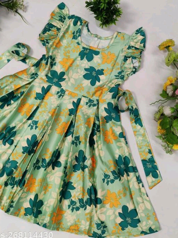New stylish Green floral Baby Girls Dress/FrocksFabric: SatinSleeve Length: Short SleevesPattern: PrintedNet Quantity (N): SingleSizes:0-6 Months, 6-9 Months, 6-12 Months, 9-12 Months, 12-18 Months, 18-24 Months, 0-1 Years, 1-2 Years, 2-3 Years, 3-4 Years, 4-5 Years, 5-6 Years, 6-7 Years, 7-8 Years, 8-9 YearsThese designs are prin