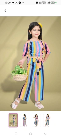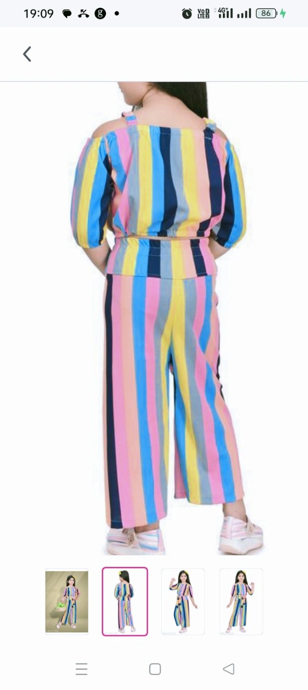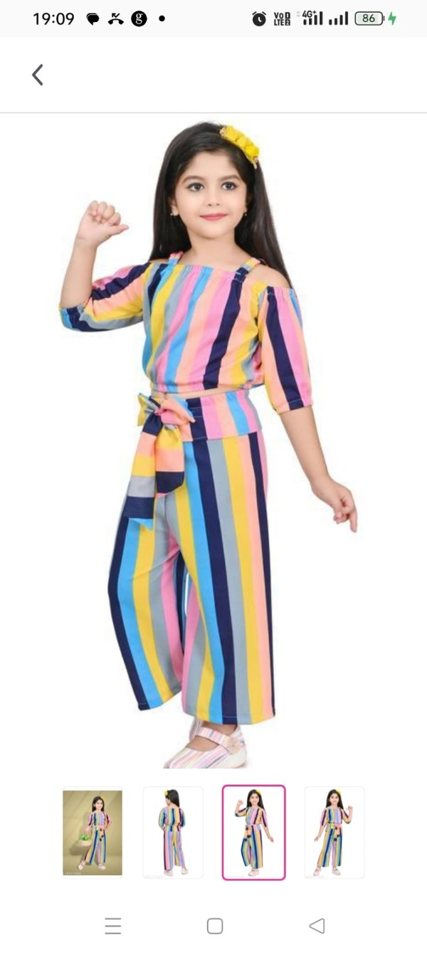 Princess Trendy Girls Top & Bottom SetsTop Fabric: CrepeBottom Fabric: CrepeSleeve Length: Three-Quarter SleevesTop Pattern: StripedBottom Pattern: StripedNet Quantity (N): SingleSizes:2-3 Years (Top Chest Size: 10 in, Top Length Size: 10 in, Bottom Waist Size: 11 in, Bottom Length Size: 21 in) 3-4 Years (Top Chest Size: 10.5 in, Top Lengt