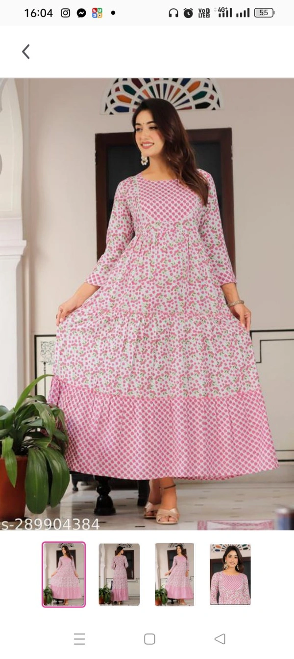 PRINTED EMROIDERY GOWN FOR WOMAN FASHION Name: RAYON WOMAN PRINTED EMROIDERY GOWN FOR WOMAN FASHION Fabric: RayonSleeve Length: Three-Quarter SleevesPattern: PrintedCombo of: SingleSizes:M (Bust Size: 38 in, Size Length: 52 in) L (Bust Size: 40 in, Size Length: 52 in) XL (Bust Size: 42 in, Size Length: 52 in) XXL (Bust Size: 44 in, Size Length: 52 in) Country of Origin: I