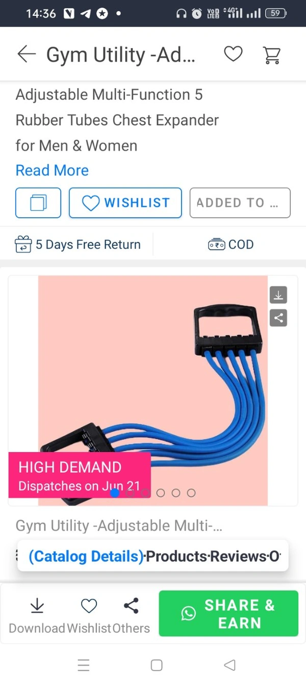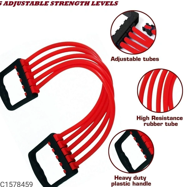 *Product Name:* Gym Utility -Adjustable Multi-Function 5 Rubber Tubes Chest Expander for Men & Women*Details:*Product Description: Adjustable Multi-Function 5 Rubber Tubes Chest Expander for Men & Women Dimensions(L x W x H in Cm): 65 x 11 x 3Features:-Adjustable Chest Expander Portable Puller Exercise Fitness Resistance Band Tube Yoga 5 Latex Resistance Bands.High Quality Material