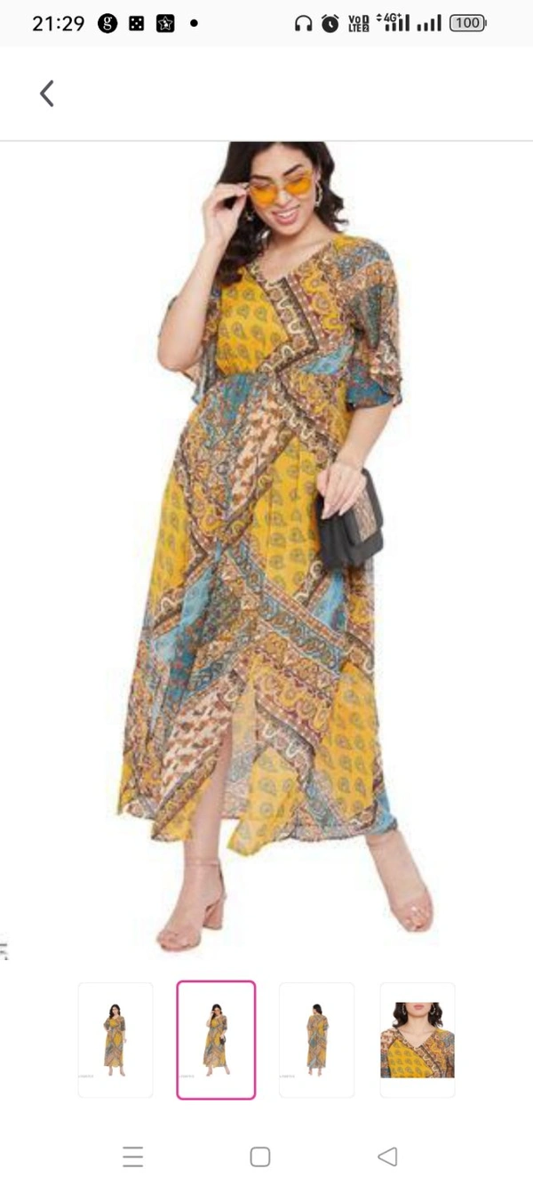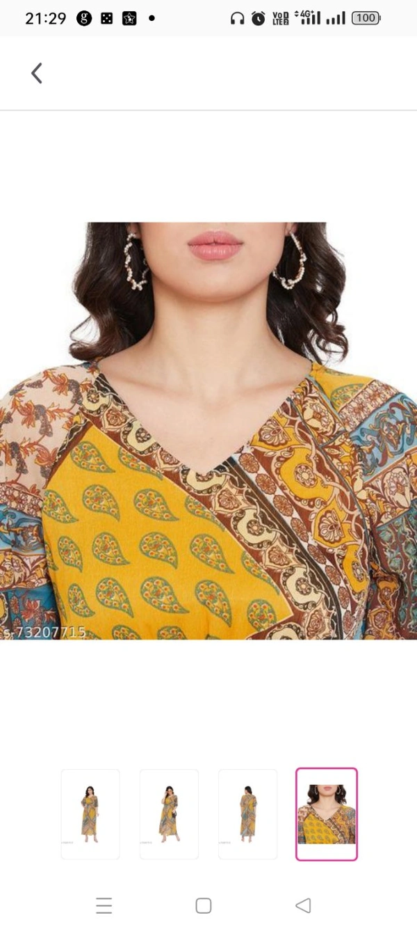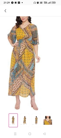 Rain Tree Womens Georgette Printed With Cotton Lining Yellow and Blue DressFabric: GeorgetteSleeve Length: Short SleevesPattern: PrintedSizes: S M L XL XXL Original : India