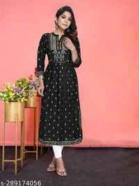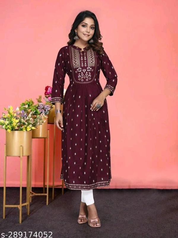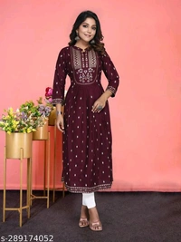 Rayon Kurti With Nayra Cut KurtiName: Rayon Kurti With Nayra Cut KurtiFabric: RayonSleeve Length: Three-Quarter SleevesPattern: PrintedCombo of: SingleSizes:S (Bust Size: 36 in) M (Bust Size: 38 in) L (Bust Size: 40 in) XL (Bust Size: 42 in) XXL (Bust Size: 44 in) Name : Rayon Kurti With Nayra Cut KurtiFabric : RayonPattern : PrintedNet Quantity (N) : 1Sizes : S, M, L, XL, XXLIndia