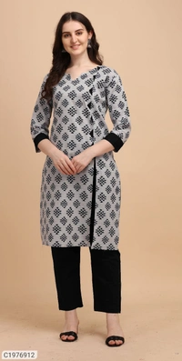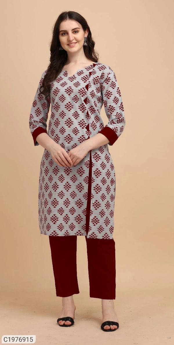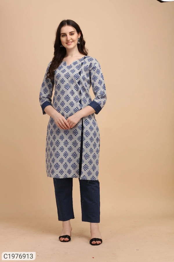 Stunning Cotton Printed Kurti Pant Set Package Contains: 1 Kurti with 1 Pant
