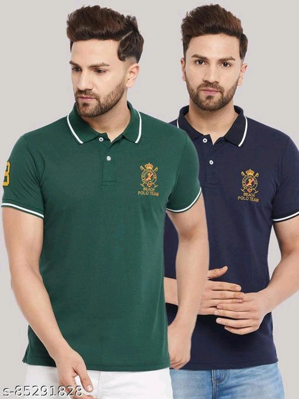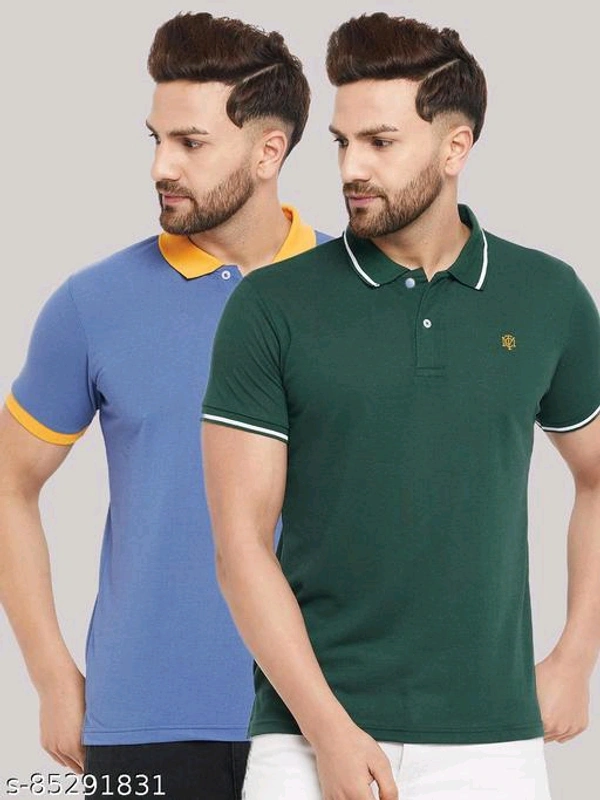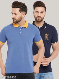 The Million Club Men's Pack of 2 Blue Half Sleeves Solid Polo NeckT-shirtName: The Million Club Men's Pack of 2 Blue Half Sleeves Solid Polo NeckT-shirtFabric: Cotton BlendSleeve Length: Short SleevesPattern: SolidNet Quantity (N): 2Sizes:M (Chest Size: 40 in, Length Size: 27 in) L (Chest Size: 42 in, Length Size: 27.5 in) XL (Chest Size: 44 in, Length Size: 28 in) XXL (Chest Size: