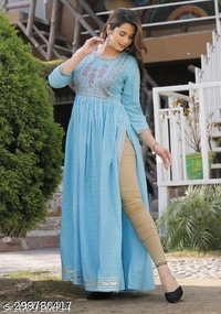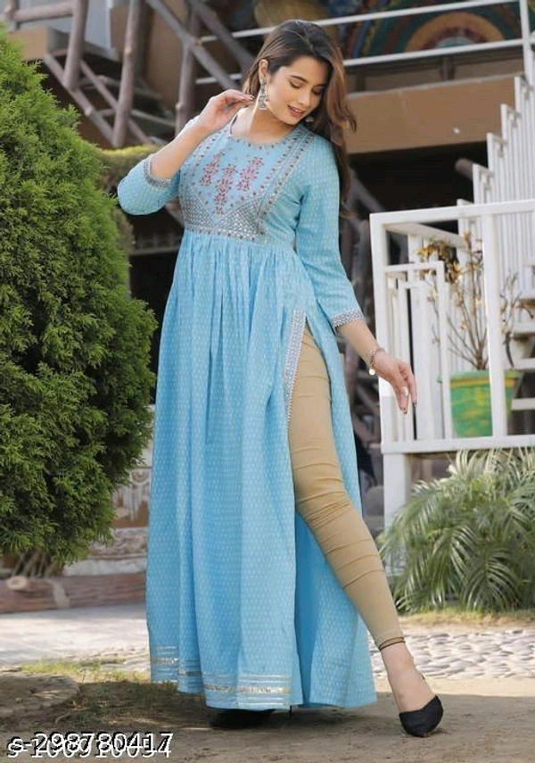 Trendy Anarkali KurtiFabric: RayonSleeve Length: Three-Quarter SleevesPattern: PrintedCombo of: SingleSizes:S (Bust Size: 36 in) M (Bust Size: 38 in) L (Bust Size: 40 in) XL (Bust Size: 42 in) XXL (Bust Size: 44 in) Trending Kurtis for Partywear Kurtis, Nyra Cut Kurti Alia Cut Kurti, Embroidered Kurti, Printed Kurtis under 400Country of Origin: India