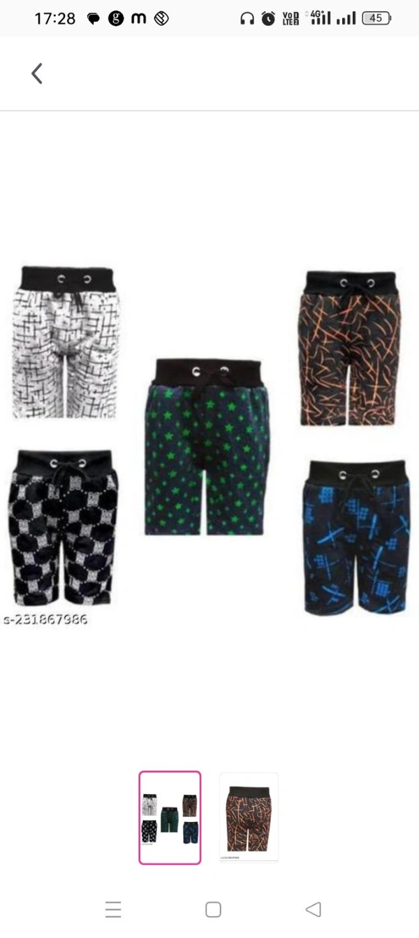 Trendy fashion Boys Printed shorts pack of 5Fabric: Cotton BlendPattern: PrintedNet Quantity (N): 5Boys printed shorts with top belt and 2 side pocketsSizes: 5-6 Years, 7-8 Years, 9-10 Years, 11-12 Years, 13-14 Years, 15-16 YearsCountry of Origin: India