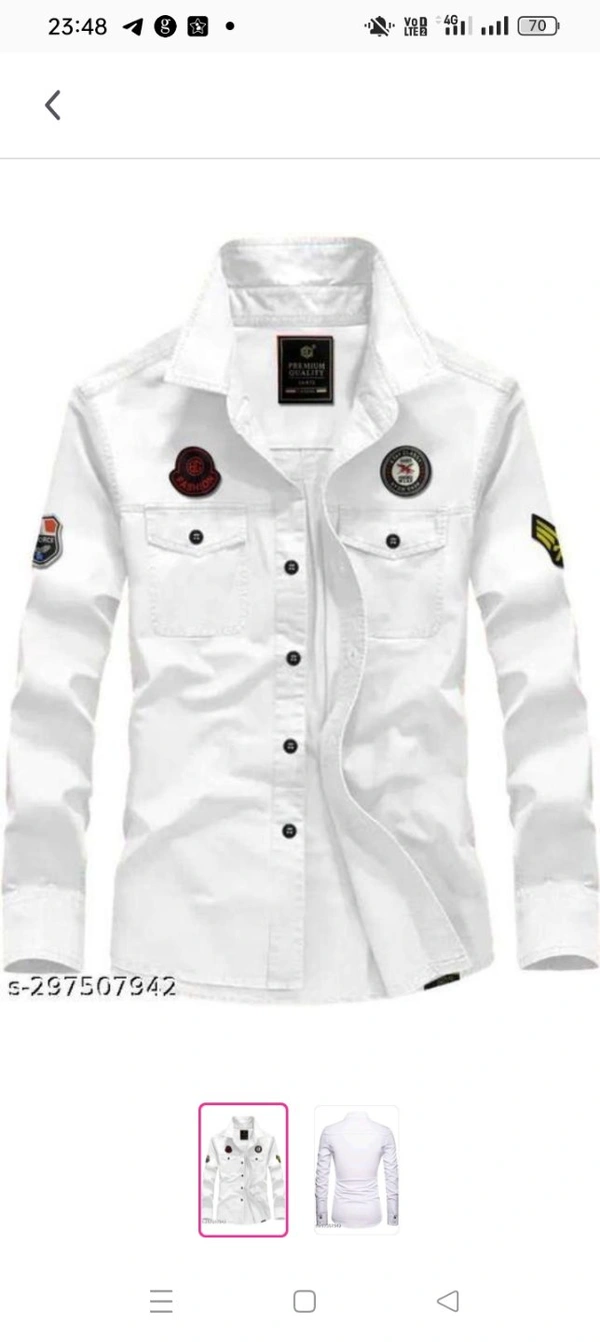 WHITE CARGO SHIRTName: WHITE CARGO SHIRTFabric: CottonSleeve Length: Long SleevesPattern: SolidNet Quantity (N): 1Sizes:S (Chest Size: 38 in, Length Size: 27.5 in) M (Chest Size: 40 in, Length Size: 28 in) L (Chest Size: 42 in, Length Size: 29 in) XL (Chest Size: 44 in, Length Size: 30 in) XXL (Chest Size: 46 in, Length Size: 30.5 in) - Care Instructions: Hand Wash Only- Fit Type: