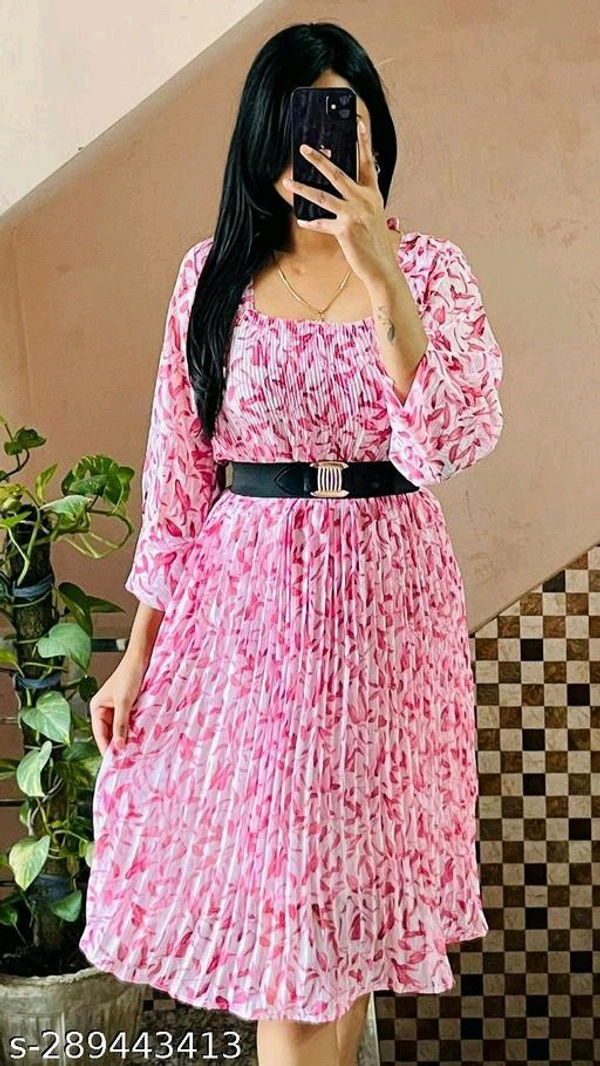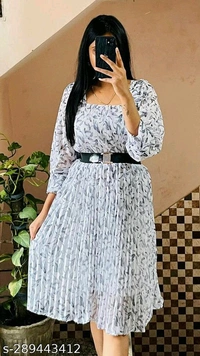 Women Dresses*Fabric: GeorgetteSleeve Length: Three-Quarter SleevesPattern: PrintedNet Quantity (N): 1Sizes:S (Bust Size: 34 in, Length Size: 46 in) M (Bust Size: 36 in, Length Size: 46 in) L (Bust Size: 38 in, Length Size: 46 in) Dispatch: 1 Day*Proof of Safe Delivery!