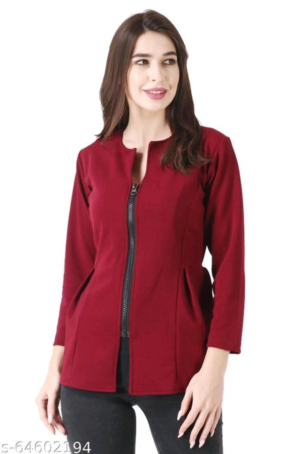 Women Mahroon Solid Front Zip ShrugFabric: PolycottonSleeve Length: Long SleevesFit/ Shape: ShrugPattern: SolidNet Quantity (N): 1Sizes:XXS (Bust Size: 30 in, Length Size: 20 in) XS (Bust Size: 32 in, Length Size: 20 in) S (Bust Size: 34 in, Length Size: 20 in) M (Bust Size: 36 in, Length Size: 21 in) Women Solid Zip Shrug ,Self design Shurg