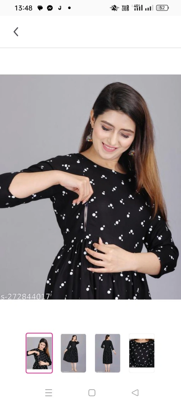 Women Reyon Printed Anarkali feeding Gown Fabric: RayonSleeve Length: Three-Quarter SleevesPattern: PrintedNet Quantity (N): 1Women Rayon Printed Anarakali feeding GownSizes: M (Bust Size: 38 in, Length Size: 40 in) L (Bust Size: 40 in, Length Size: 40 in) XL (Bust Size: 42 in, Length Size: 40 in) XXL (Bust Size: 44 in, Size: 40