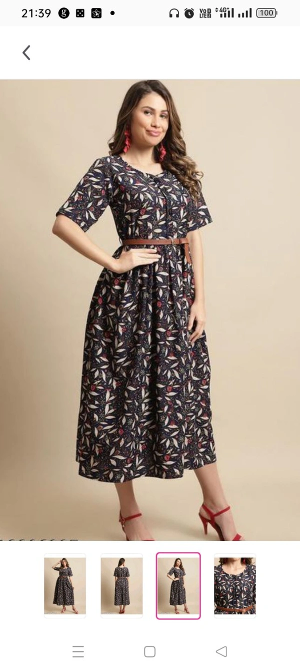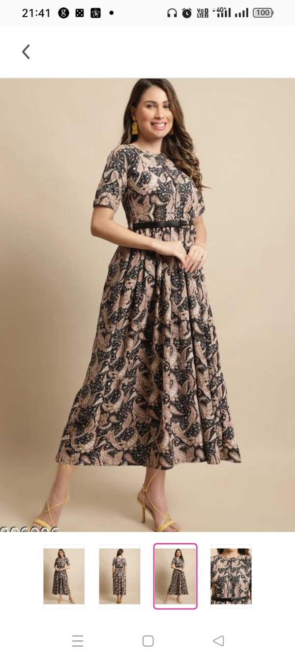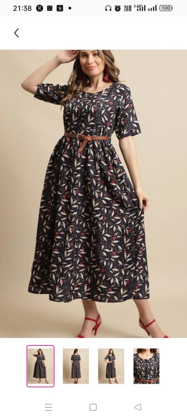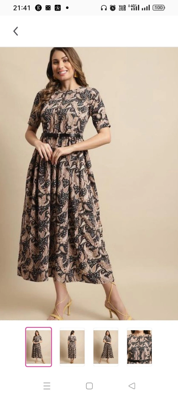 Women's Black Printed Knee-Length Dress With Belt (Gown-103)Name: Women's Black Printed Knee-Length Dress With Belt (Gown-103)Fabric: RayonSleeve Length: Short SleevesPattern: PrintedNet Quantity (N):1 Size :S M L XL XXL