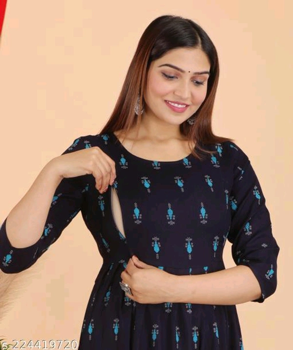 Women's Maternity Both Side Zip Printed Feeding WearName: Women's Maternity Both Side Zip Printed Feeding WearFabric: RayonSleeve Length: Three-Quarter SleevesStitch Type: Semi-StitchedFit/ Shape: AnarkaliPattern: PrintedCombo of: SingleWomen's Maternity Both Side Zip Printed Feeding WearSizes: M (Bust Size: 38 in, Top Length Size: 47 in, Waist Size: 36 in, Bottom Length Size: 47 i