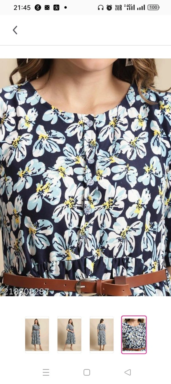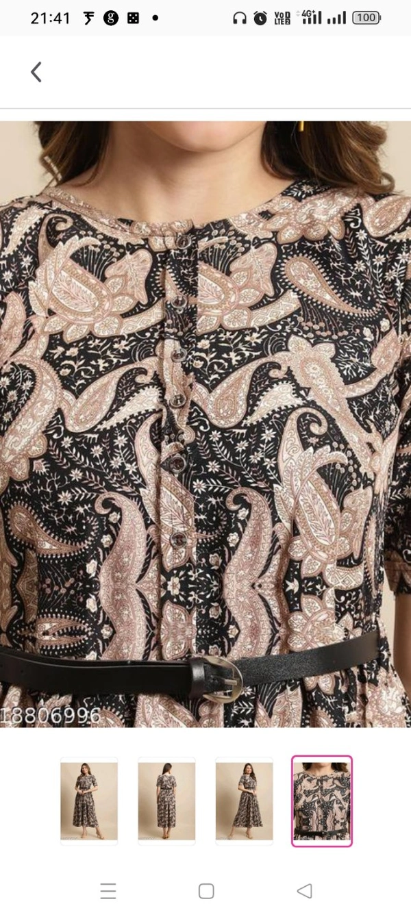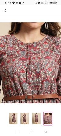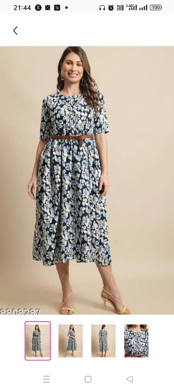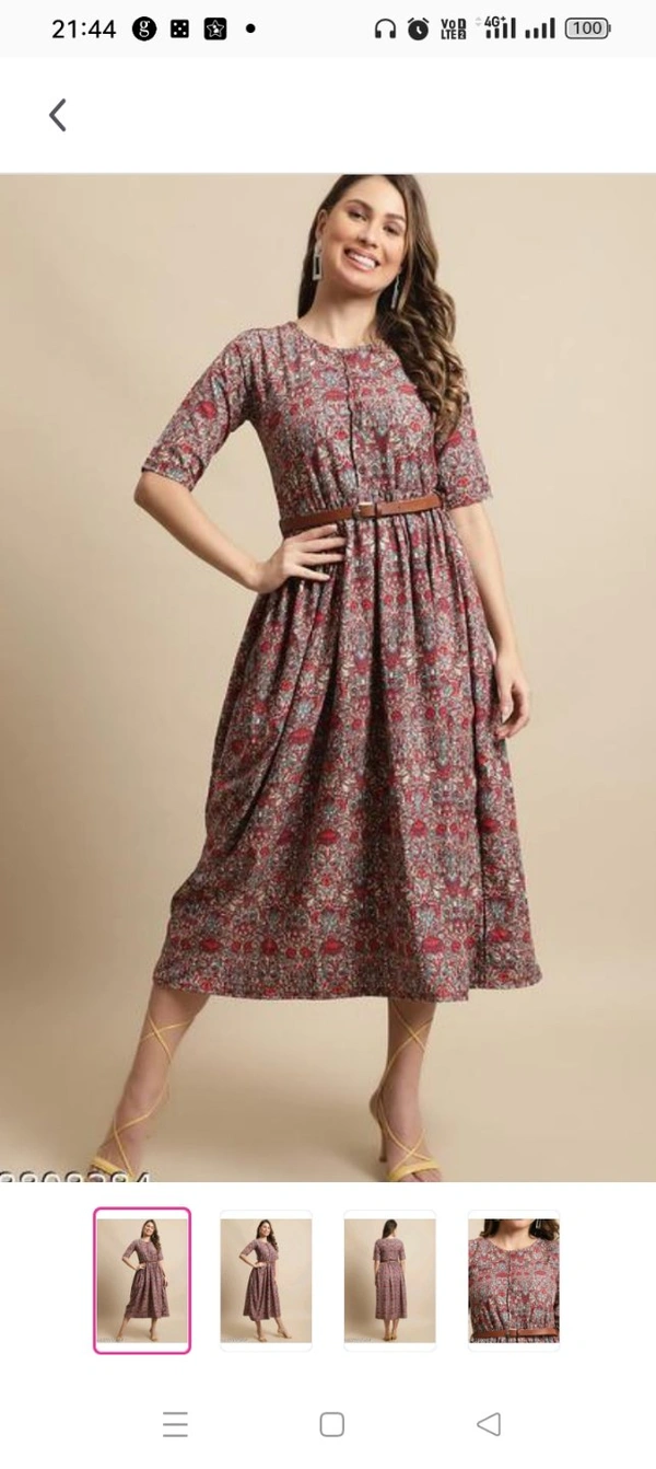 Women's Multicolor Printed Knee-Length Dress With Belt Name: Women's Multicolor Printed Knee-Length Dress With Belt Fabric: RayonSleeve Length: Three-Quarter SleevesPattern: PrintedNet Quantity (N): 1Sizes: S M L XL XXL