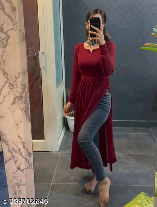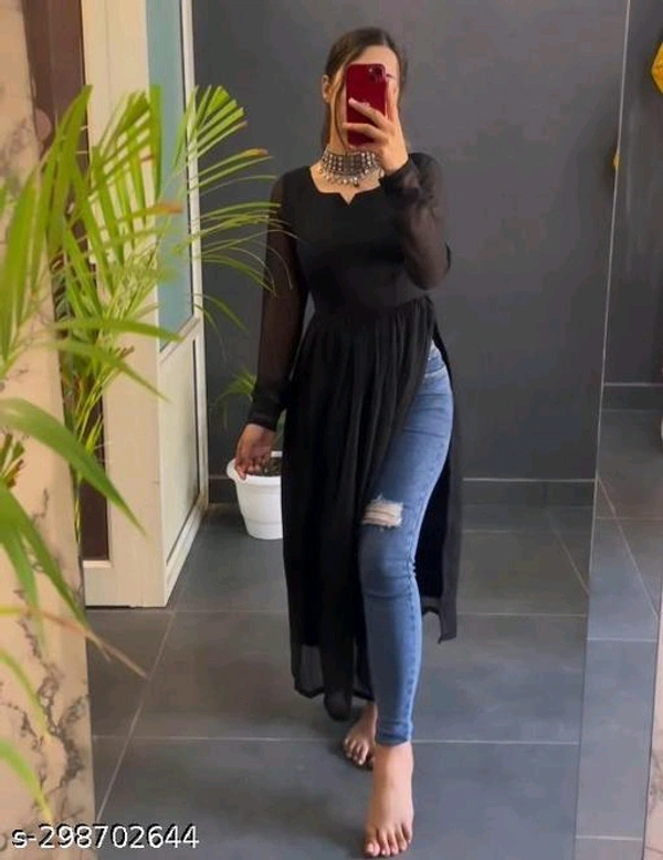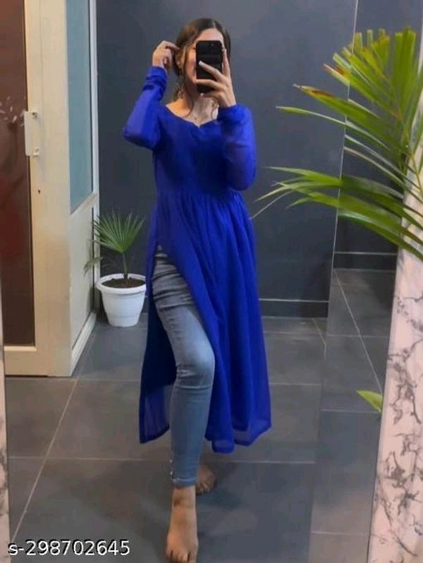 womens stylish kurtiName: womens stylish kurtiFabric: GeorgetteSleeve Length: Long SleevesPattern: SolidCombo of: Single, Sizes: S M L XL XXL Country of Origin: India